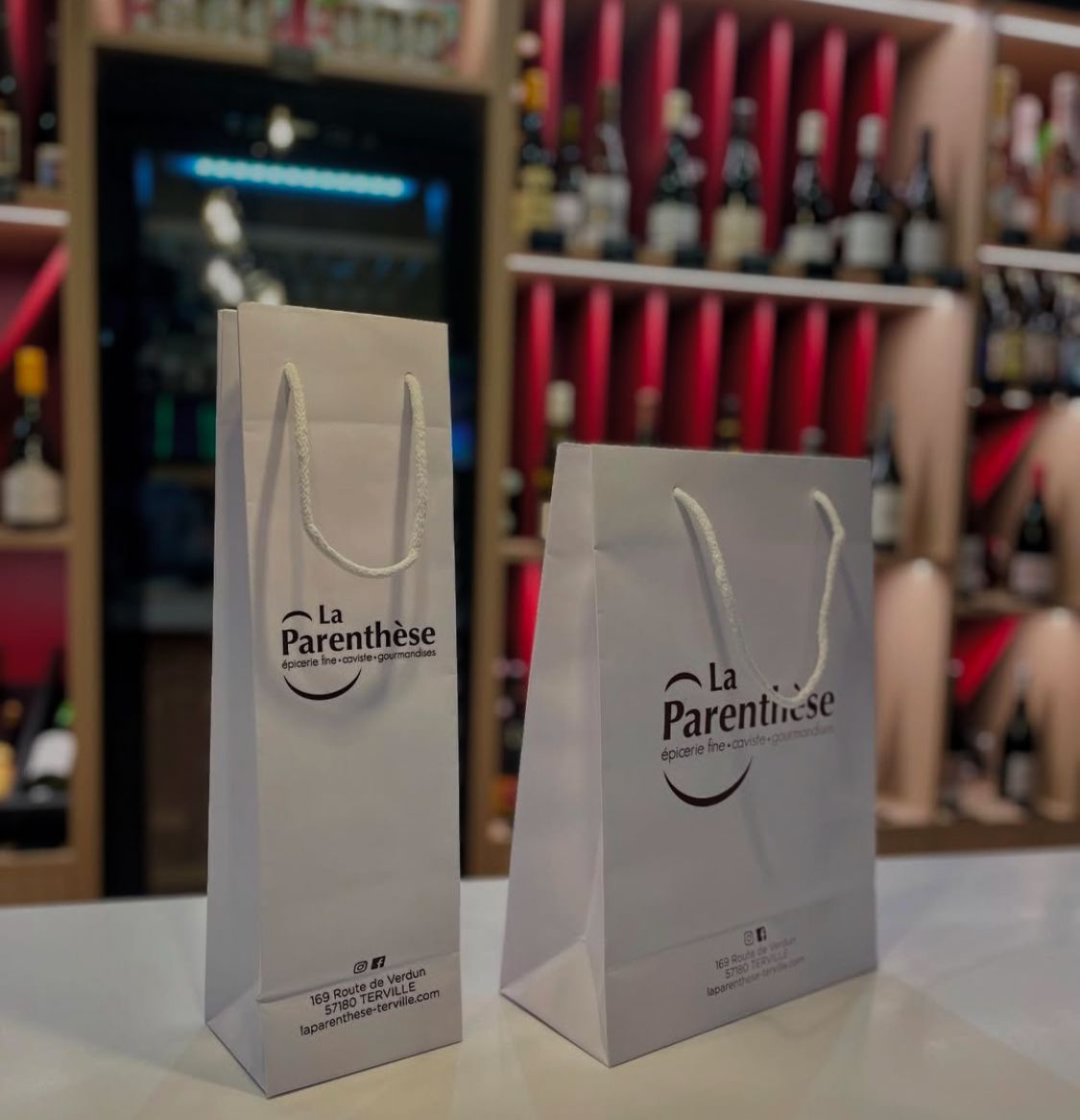 Poignées torsadées en papier, coton ou plastique (PP). Nombreux coloris de poignées et formats de sacs disponibles. Possibilités de revers sur la partie haute.